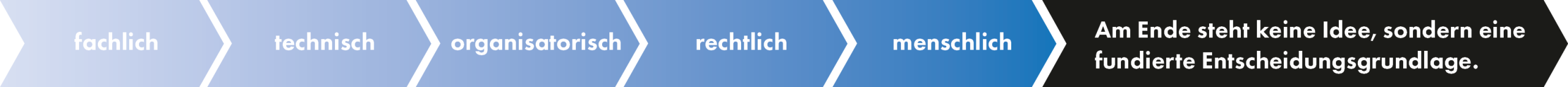 Jede teilnehmende Person arbeitet an einem realen Anwendungsfall aus dem eigenen Unternehmenskontext – mit dem Ziel, eine belastbare Entscheidungsgrundlage für konkrete Umsetzungsschritte zu entwickeln.